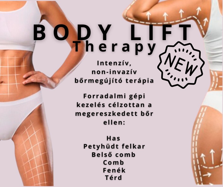 Body Lift Therapy kezelésünk innovatív technológia révén segít visszaadni bőröd feszességét, rugalmasságát, tömörségét. Ez a forradalmi, non-invazív bőrfiatalító terápia a szervezet saját kollagénjének stimulálása révén újítja meg a bőr szerkezetét, tónusát és kontúrját.